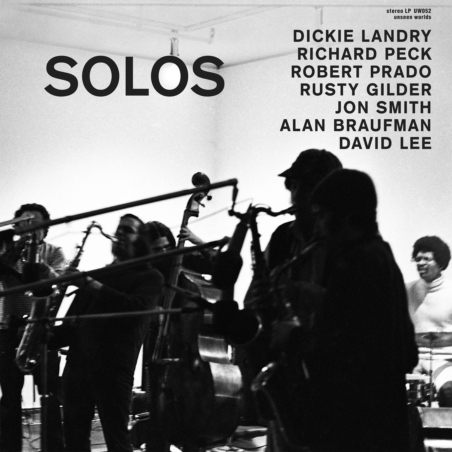 Just shy of seven years later, on February 19, 1972, a crew of mostly Louisiana-raised musicians came together at the Leo Castelli Gallery on West Broadway in Soho to perform a wholly improvised concert. Not unlike Ascension, this ensemble's solos spring from collective improvisations and a tumultuous backbeat, loosely inspired by the creations of Coltrane, Coleman, Albert Ayler, and their brethren. The de facto leader was Richard "Dickie" Landry, a saxophonist and keyboardist who was crucial in helping assemble The Philip Glass Ensemble in 1969, shifting its focus from Downtown cognoscenti to an intense crew of mostly Cajun musicians. For this recording, fellow Glass reedists Jon Smith and Richard Peck joined in alongside Rusty Gilder and Robert Prado, both doubling on bass (upright and electric) and trumpet. The drum chair was occupied by New Orleans firecracker David Lee, Jr., who brought alto saxophonist Alan Braufman along for the session (Braufman was the only non-Louisiana player in the band). The ensemble stretched out in the gallery for several hours in a configuration reflecting those that look place at Landry's Chinatown loft, documented in photos by artists Tina Girouard (Landry's then-partner) and Suzanne Harris that adorn the inside of the original gatefold album jacket. Recorded live by Glass' sound engineer Kurt Munkacsi, the album was released as a double LP on Chatham Square, the small imprint Landry and Glass co-ran, in a stark greyscale cover and simply titled Solos. The order of the players' improvisations was laid out on the album inner labels, though unsurprisingly there's a fair amount of blend.